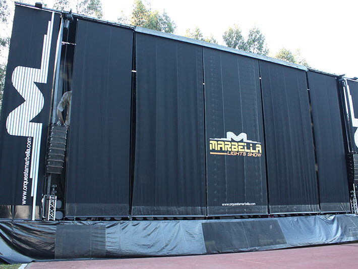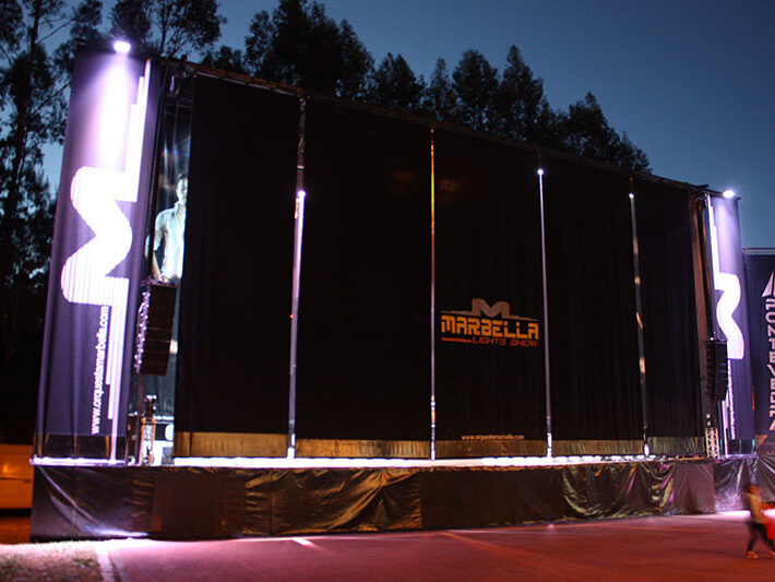 Escenario Móvil de 25.50 mts.de largo x 10 mts. de fondo x 13.20 mts. de alto.